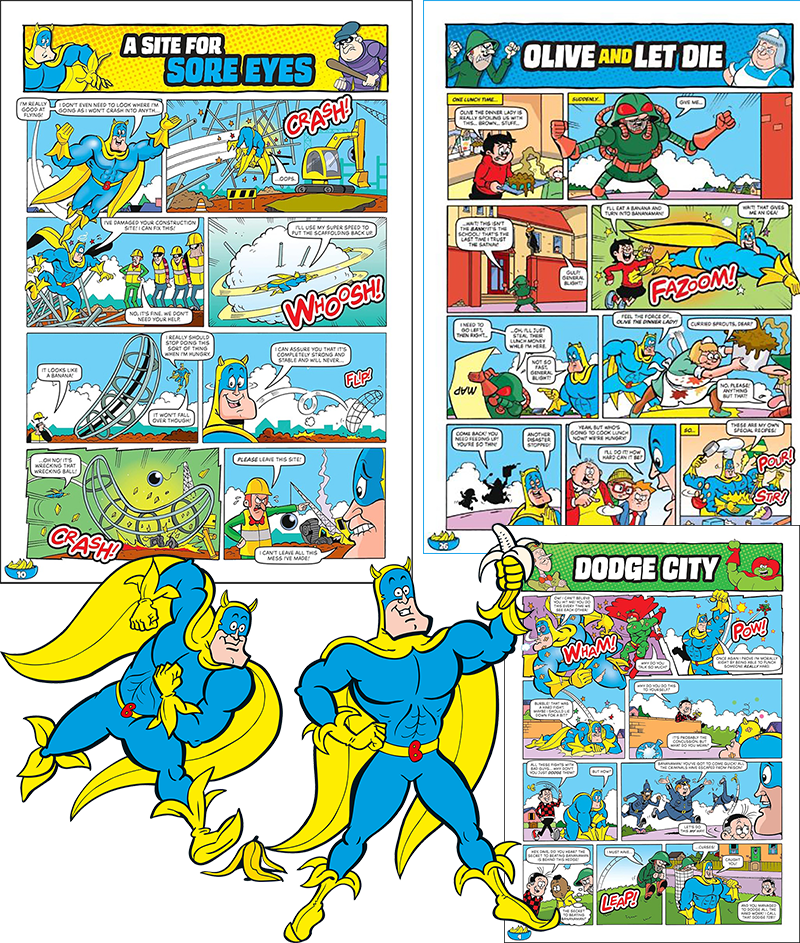 本卷《香蕉超人》漫画精选是由编剧 Ned Hartley 与 Nigel Auchterlounie、插画师 Wayne Thompson 连手打造的68页爆笑超级英雄故事集!