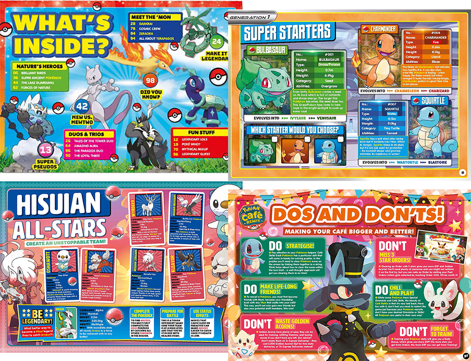 DC Thomson《宝可梦》系列杂志不仅有详细游戏指南,还有解谜挑战、绘画任务和更多有趣活动。通过详尽的攻略、实用技巧、隐藏小诀窍和趣味小知识,你将轻松掌握每一款游戏,帮你成为宝可梦高手!我们将带你畅玩Switch和手机上的热门游戏,从经典复古到最新大作应有尽有;更深入了解「梦幻」(Mew) 和「超梦」(Mewtwo),透过解密任务创造属于你自己的宝可梦;走过游戏场景,从关都地区 (Kanto) 到帕底亚 (Paldea),再到宝可梦世界中的其他区域。